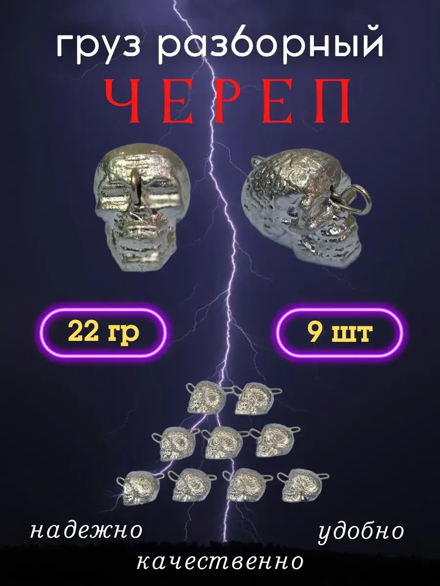 Разборный груз "Череп" используется для оснащения силиконовых и иных приманок, мандул, стримеров при ловле на джиг. Груз имеет форму черепа. На одной стороне выдавлени вес. Скрепка изготовлена из нержавеющей стали диаметром 0,8 мм и выдерживает значительные нагрузки.