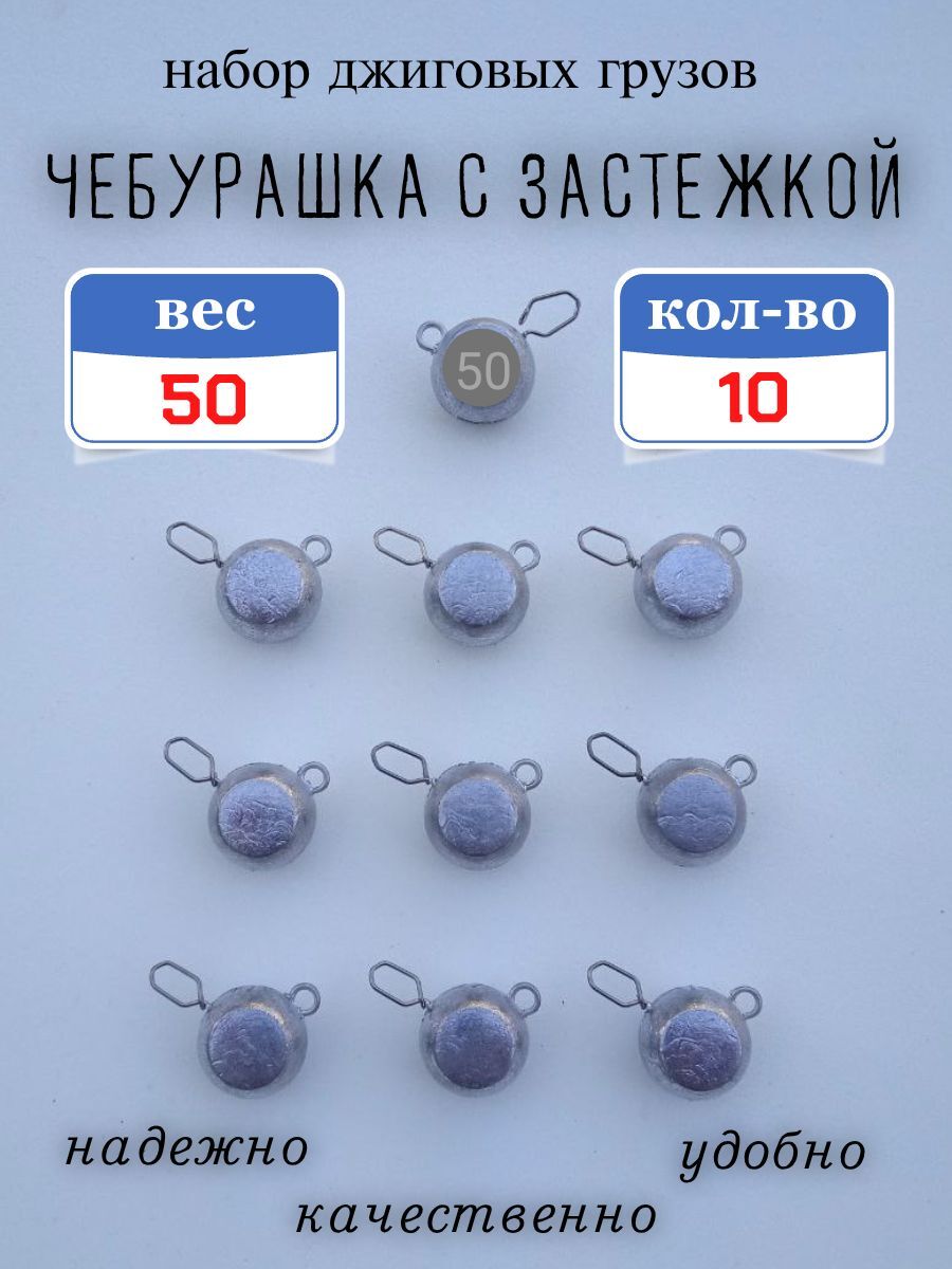 Грузило "Чебурашка с застежкой" используется для оснащения силиконовых и иных приманок, мандул, стримеров при ловле на джиг. Оснащение грузика застежкой добавляет удобства при замене груза или приманки. Используется застежка типа "американка", очень надежная , изготовлена из упругой высокоуглеродистой стали. Количество циклов застегивания/растегивания не ограничено. Груз имеет форму шара, сплуснутого с боков. На одной стороне выдавлени вес.