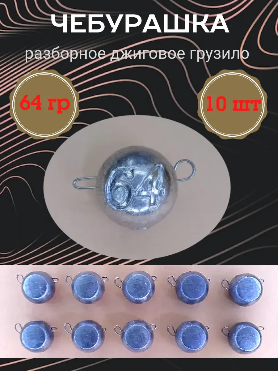 Грузило "Чебурашка" разборное используется для оснащения силиконовых и иных приманок, мандул, стримеров при ловле на джиг. Вынимаемая скрепка позволяет быстро и легко менять груз или приманку. Скрепка изготовлена из нержавеющей высокоуглеродистой проволоки диаметром 0,8 мм. Груз имеет форму шара, сплюснутого с боков. На одной стороне выдавлени вес.