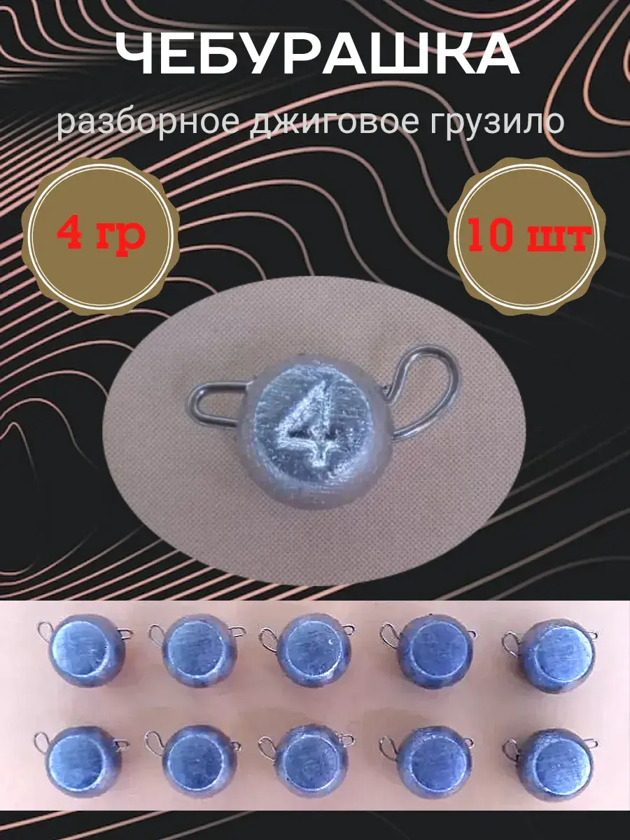 Грузило "Чебурашка" разборное используется для оснащения силиконовых и иных приманок, мандул, стримеров при ловле на джиг. Вынимаемая скрепка позволяет быстро и легко менять груз или приманку. Скрепка изготовлена из нержавеющей высокоуглеродистой проволоки диаметром 0,8 мм. Груз имеет форму шара, сплюснутого с боков. На одной стороне выдавлени вес.