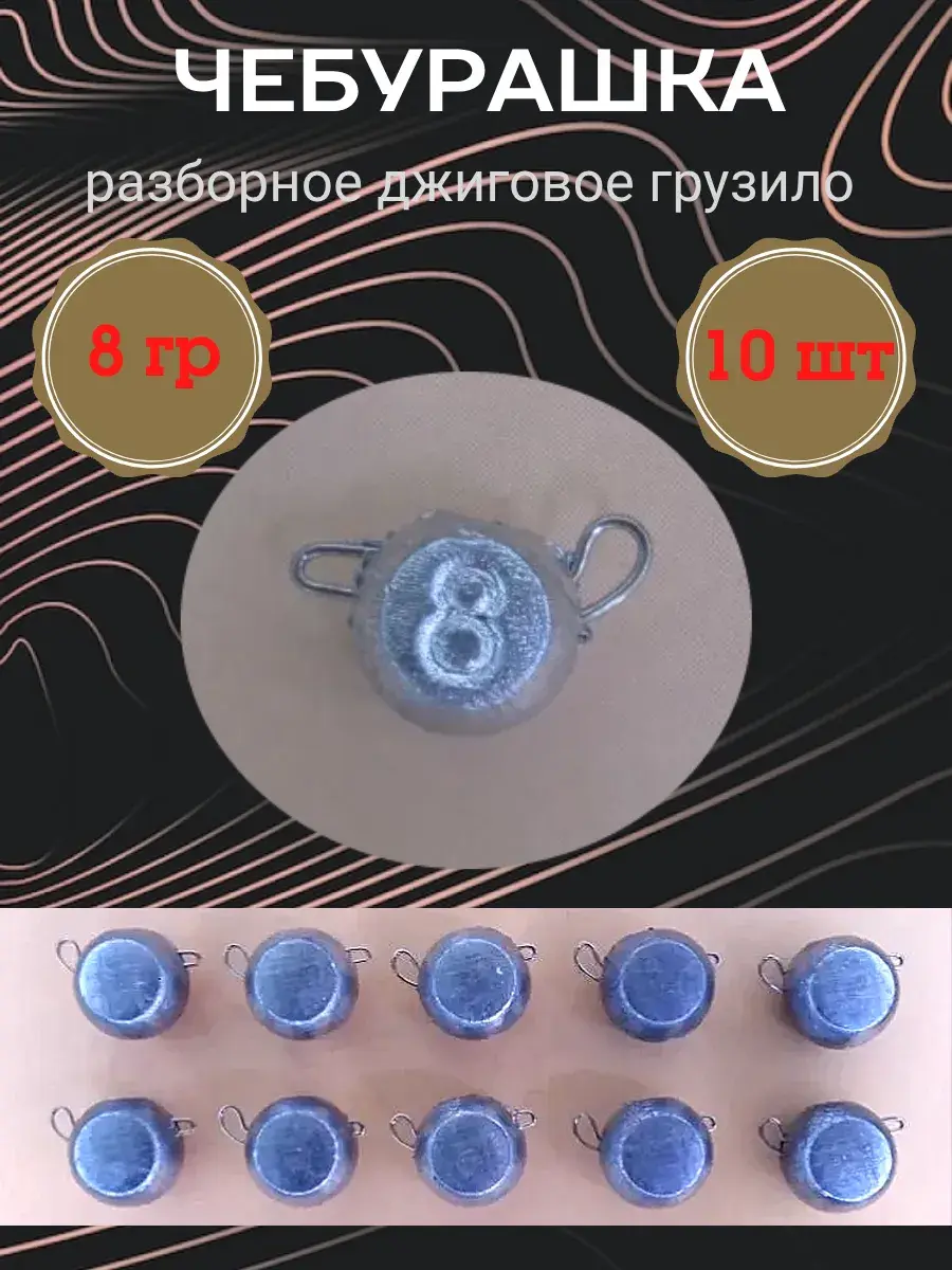 Грузило "Чебурашка" разборное используется для оснащения силиконовых и иных приманок, мандул, стримеров при ловле на джиг. Вынимаемая скрепка позволяет быстро и легко менять груз или приманку. Скрепка изготовлена из нержавеющей высокоуглеродистой проволоки диаметром 0,8 мм. Груз имеет форму шара, сплюснутого с боков. На одной стороне выдавлени вес.