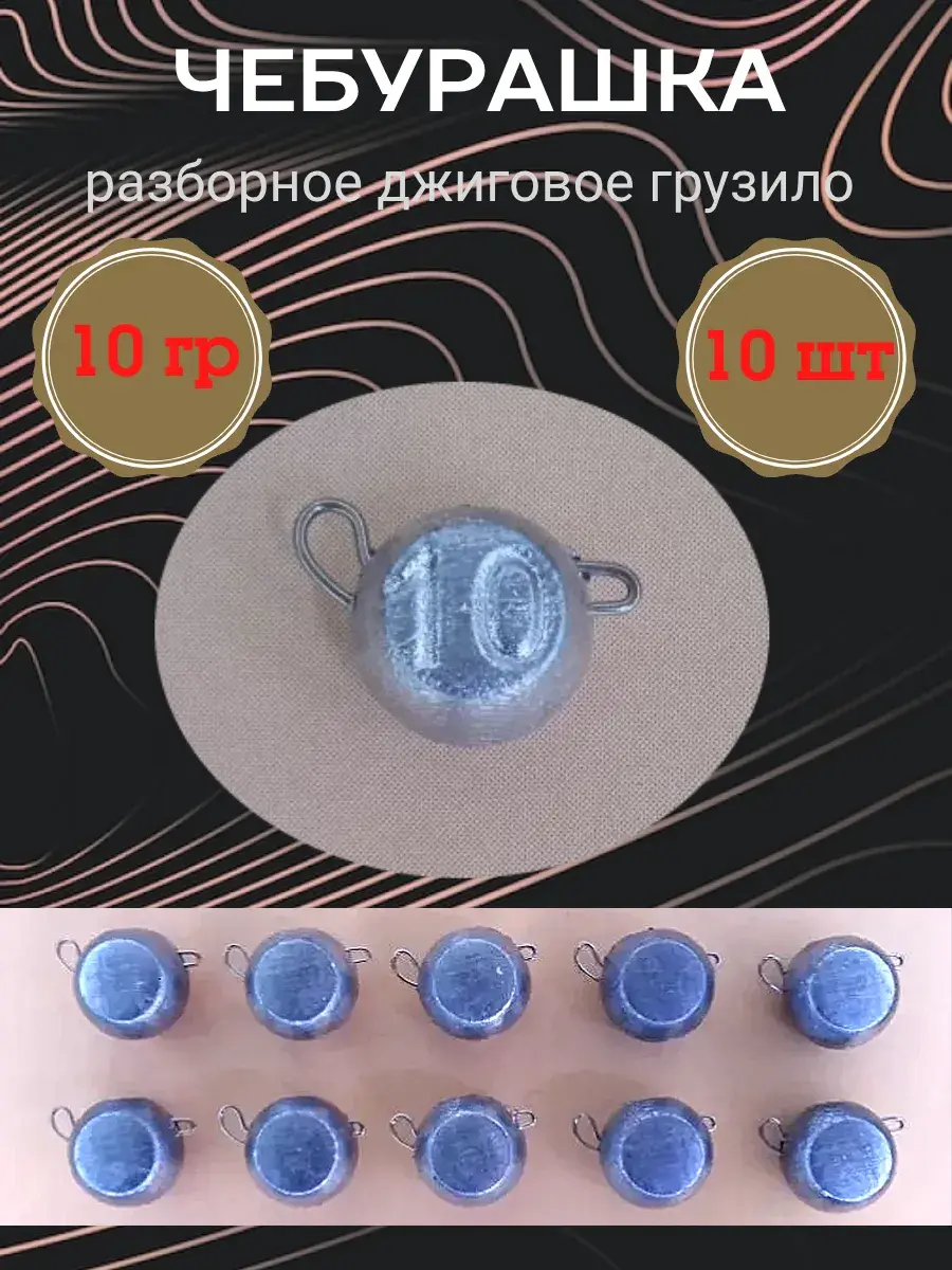 Грузило "Чебурашка" разборное используется для оснащения силиконовых и иных приманок, мандул, стримеров при ловле на джиг. Вынимаемая скрепка позволяет быстро и легко менять груз или приманку. Скрепка изготовлена из нержавеющей высокоуглеродистой проволоки диаметром 0,8 мм. Груз имеет форму шара, сплюснутого с боков. На одной стороне выдавлени вес.