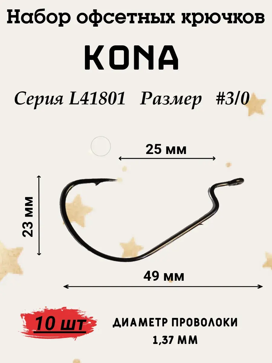 Офсетный крючок , форма изгиба - Wide Gap Worm. Производство крупного китайского завода Kona. Изготовлен из высокоуглеродистой стали с покрытием “Темный никель”, очень прочный и острый, при больших нагрузках пружинит, но не ломается. Оригинальная форма офсетного крючка дает возможность просто и быстро насадить приманки любых форм, в том числе широких. Основное применение офсетных крючков – монтаж приманки в незацепляющемся варианте для джиговой проводки, для оснасток “Каролина”, “Техас”, “Московская” и др. Жало крючка смотрит точно на ушко, что делает монтаж-“Незацепляйку” идеальной.
