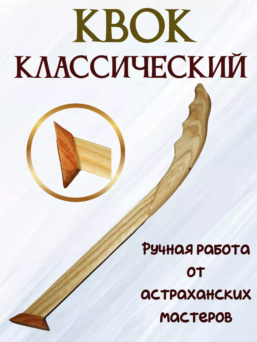 Квок деревянный со плоской пяткой. Изготавливается из твердых пород дерева - бук, вяз, шелковица, ясень и т.д. Обладает классическими пропорциями и прямоугольной скругленной плоской пяткой. Правильные пропорции квока позволяют извлекать четкий и сильный звук в разных сложных условиях, например при волнении или ветре. Работает на любых глубинах и течении.