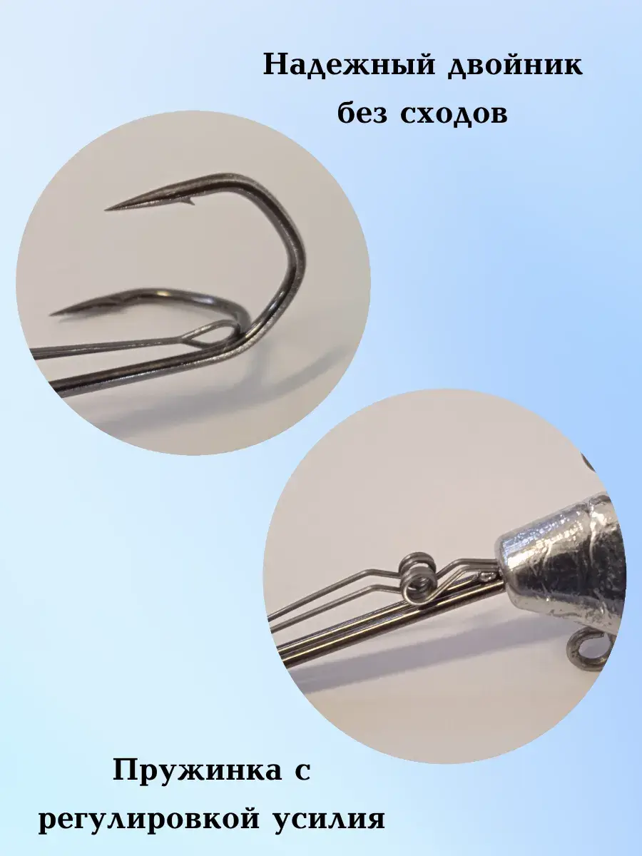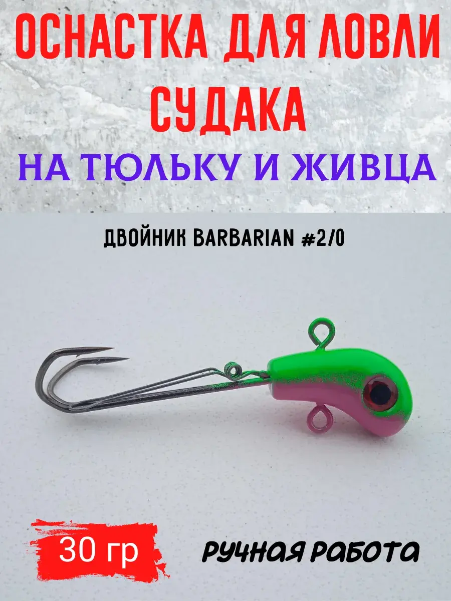 Оснастка для ловли судака на тюльку или живца. Оригинальная конструкция отлично держит приманку и не дает ей спадать на проводке. Оснащена мощным и острым двойным крючком с загибом BARBARIAN, размером 2/0. Порошково-полимерное покрытие очень долговечно, прекрасно держит поклевки зубастых хищных рыб, а также светится в ультрафиолете.