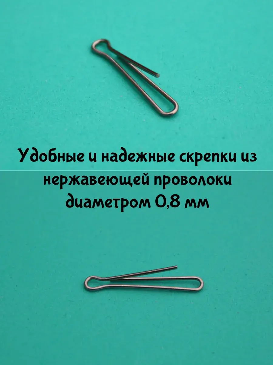 Скрепки предназначены для изготовления мандул. Произведены из нержавеющей проволоки диаметром 0,8 мм. Отличаются удобством в работе и общей надежностью.