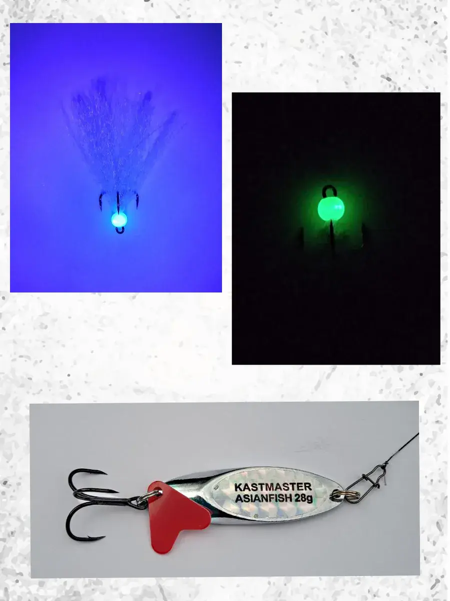 Снасточка " Догоняйка " - универсальный монтаж для ловли хищной рыбы, в первую очередь жереха. Сам монтаж изготовлен из флюорокарбона диаметром 0.41 мм. Короткий поводок предназначен для монтажа тройника с белым оперением и светонакопительной бусиной или же любой лёгкой приманки. На длинном, примерно 80 см, поводке цепляется блесна кастмастер весом 42 грамм. Конструкция позволяет делать дальние забросы в расчете на осторожного жереха. Проводка равномерная, в толще воды. В большинстве случаем жерех атакует именно тройник с опушкой. Поводки оснащены карабинами-"американками", что позволяет легко менять приманки на любые другие. Например, вместо блесны можно поставить пилькер, тейл-спиннер, тяжелую вертушку. В монтаже используются качественные тройники Kona, что позволяет охотиться на реально крупные экземпляры.