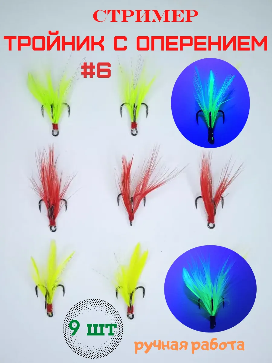 Тройник с опушкой служит отличным дополнением к различным приманкам и монтажам, а так же может служить в качестве джиговой приманки. При подледной ловле бокоплавом можно использовать в качестве нижнего тройника и дополнительного тройника в вверху оснастки. При ловле жереха можно монтировать непосредственно на приманке ( кастмастере или пилкере ) и в качестве мушки выше.Стример для рыбалки, стример, тройной крючок с оперением, стример на судака, люрекс, тройник с люрексом