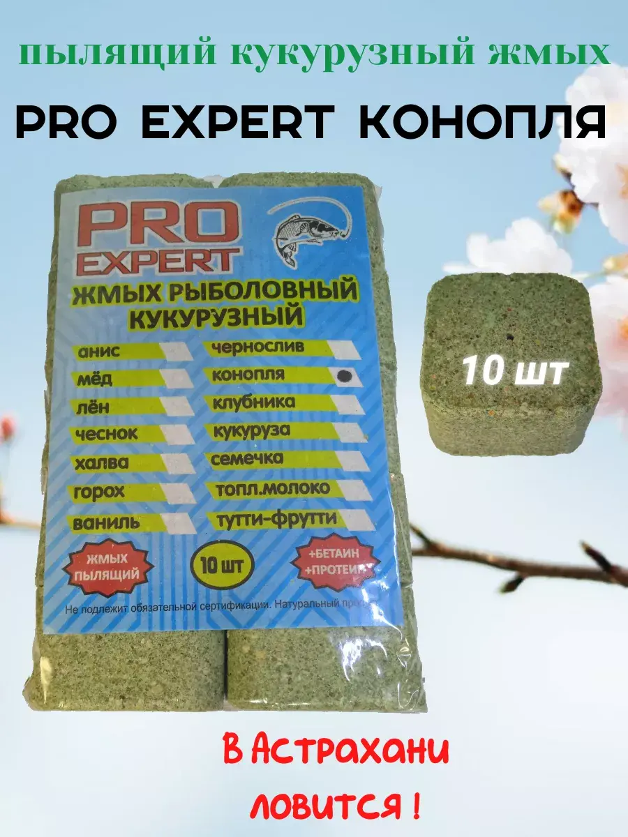 "Эксперт про" - пылящий кукурузный жмых, время растворения 1,5 - 2 часа. Характеризуется мелким полмолом, характерным ароматом, насыщенным цветом. Оригинальный рецепт разработан на основе кукурузы с добавлением протеина и бетаина. Также в состав входят натуральные пищевые ароматизаторы и красители, аминокислоты, мука кукурузы с высоким содержанием протеина, Отличительной особенностью является отверстие по центру кусочка. Таким образом жмых " Эксперт ПРО " подходит для разных видов крепления в оснастках, таких как "Петля", и "Быстросъем",